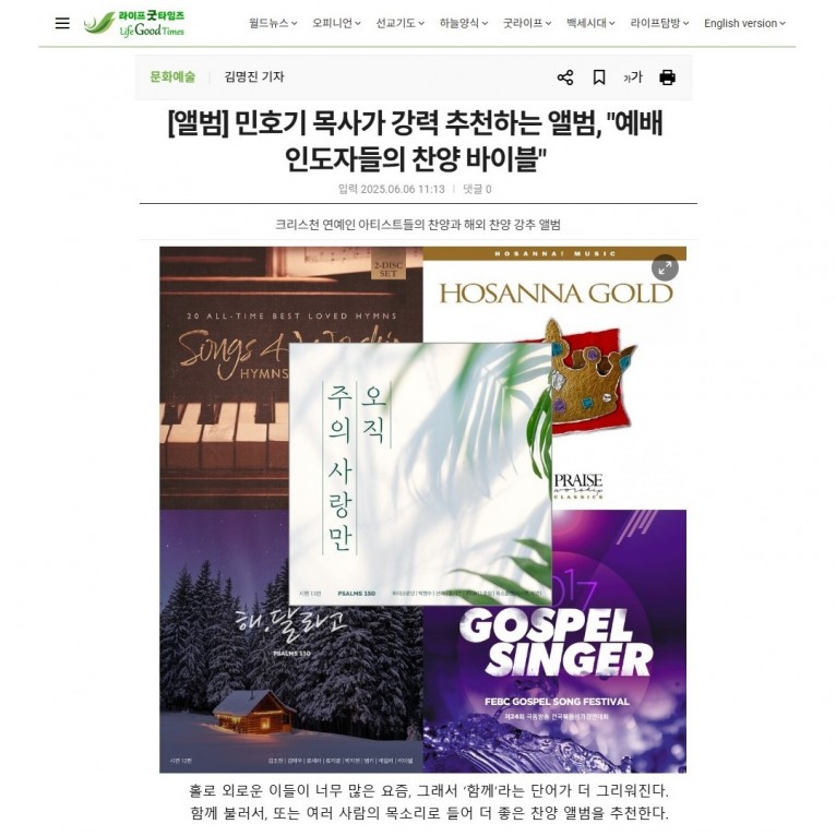 뮤직타임 [기획기사] 민호기 목사가 강력 추천하는 앨범, 예배 인도자들의 찬양 바이블(라이프굿타임즈)